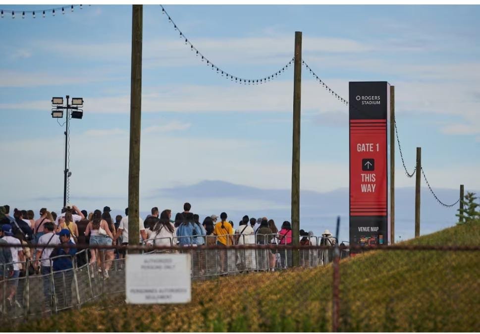 The Rogers Stadium, with a capacity exceeding 50,000, faced a significant test as fans began flooding in hours before the gates officially opened. Many fans camped outside overnight, hoping to secure the best spots on the floor or closest seats to the stage. By late afternoon, long lines snaked around the venue, with crowds growing more restless under the heat and anticipation.